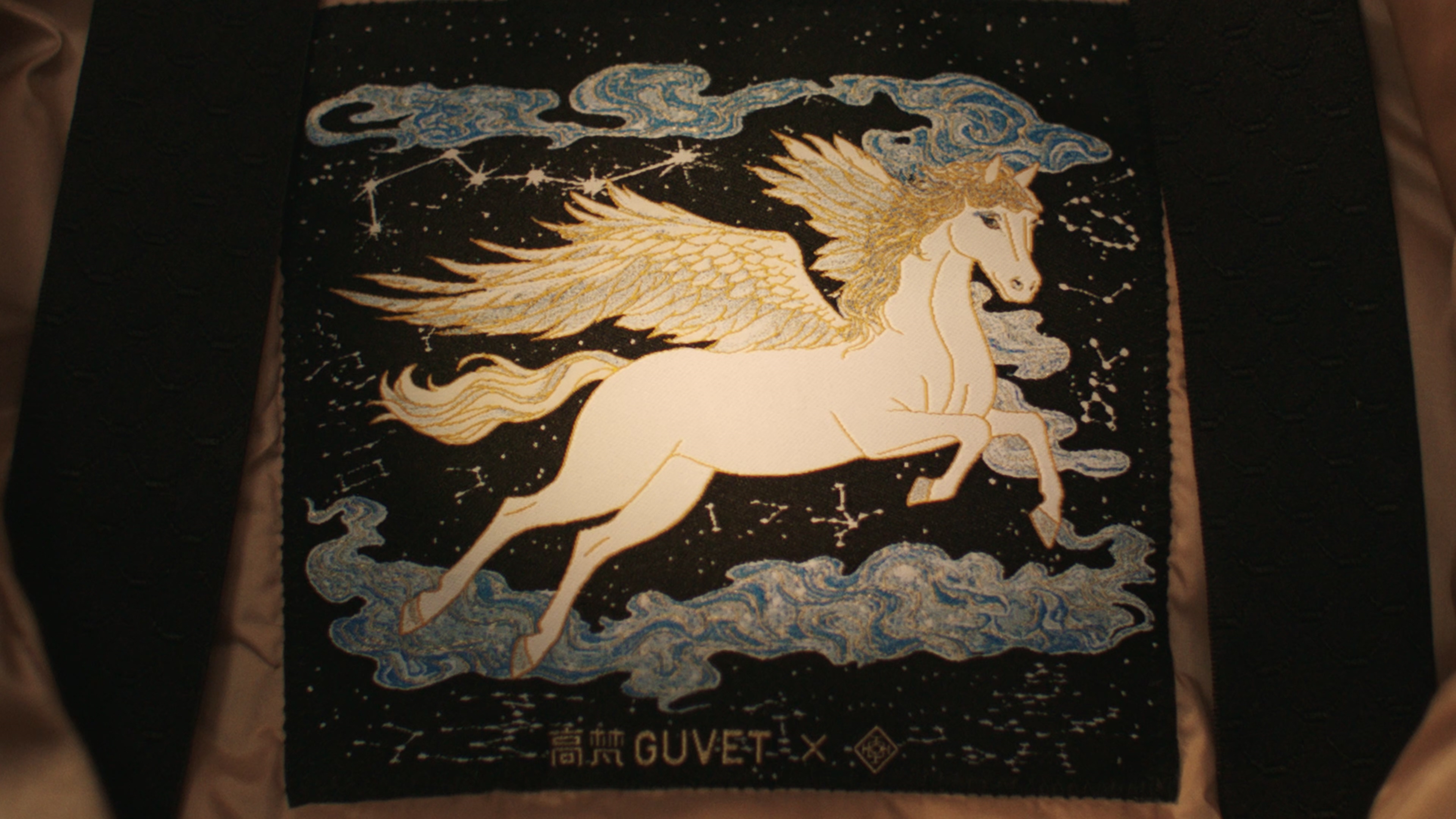 黑金龙锦金-非遗云锦鹅绒服以梦为马图案